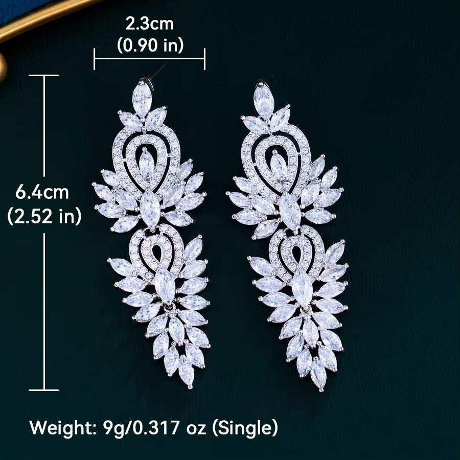 Elegant Sparkling White Zirconia Luxury Long Dangle Chandelier Bridal Wedding Evening Party Earrings
